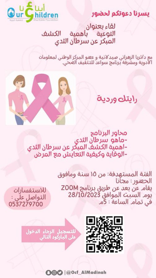 لقاء على منصة زوم للتعرف علىسرطان الثدي وأهمية الكشف المبكر والوقاية وكيفية التعايش مع المرض